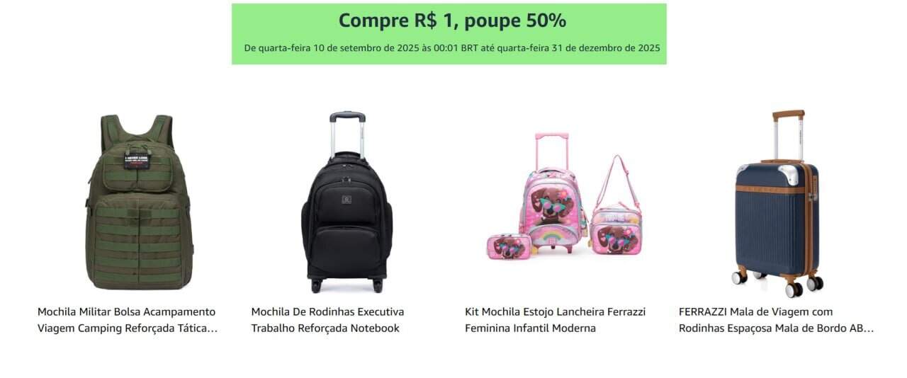 Home > Moda e Calçados > 50% OFF em Mochilas e Malas – Amazon 50% OFF em Mochilas e Malas – Amazon Amazon Equipe Promotop • 12/09/25 50% OFF Parcelado IR À LOJA Compartilhar: Detalhes da Oferta 50% OFF em Mochilas e Malas – Amazon ⚠️ Desconto na tela de pagamento! 🛒 Link: amzn.to/46jWJTp