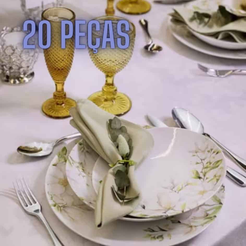 – Aparelho de Jantar e Chá 20 Peças Tramontina Redondo de Porcelana Branco Magnólia 96589034