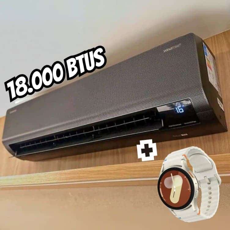 Ar Condicionado Sem Vento Samsung WindFree Black Frio 18.000 BTUs 220V e Galaxy Watch7 BT 40mm