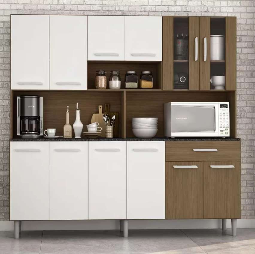 Armário de Cozinha Completa Compacta com 12 Portas Clara Carvalho / Branco