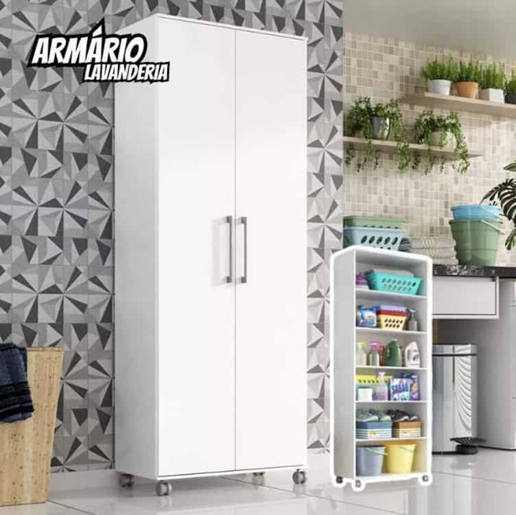 Armario Lavanderia Manuela 2 Pts 1,80m Com Rodinhas Cor Branco