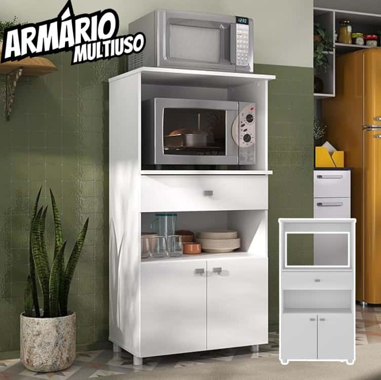 Armário Multiuso para Forno e Microondas 2 Portas 1 Gaveta Multimóveis Branco Brilho