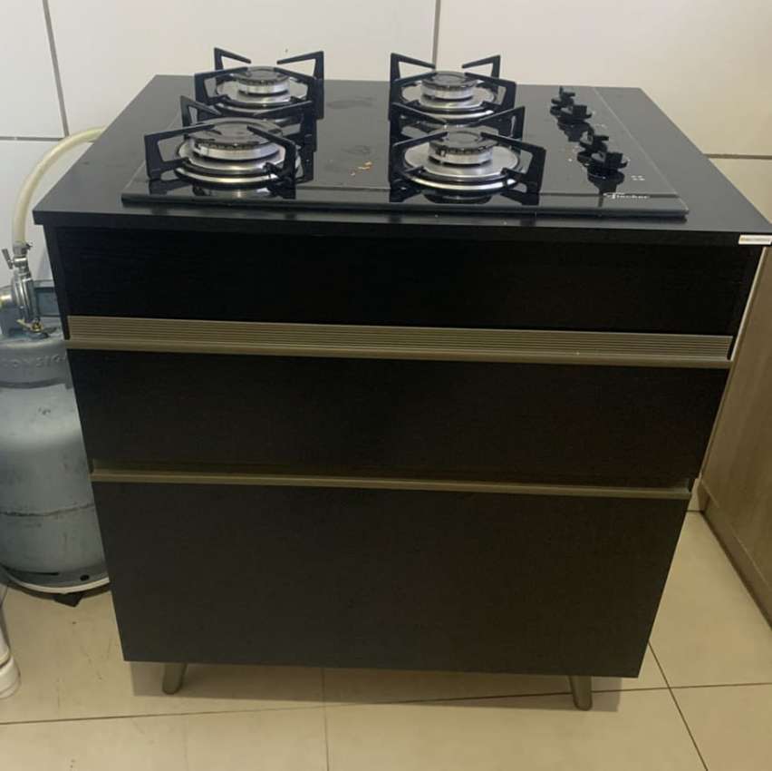 Balcão Cozinha para Cooktop 70 cm 1 Porta 1 Gaveta Veneza GB Multimóveis Preto