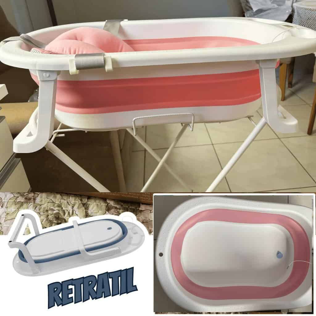 Banheira Retratil Portátil Dobrável Infantil com Termometro Digital Banho Bebê Rosa Awiki.