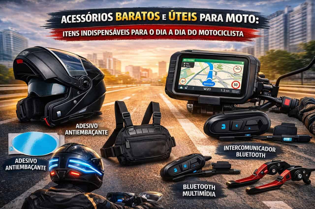 Se você usa moto para trabalhar, estudar ou resolver as coisas do dia a dia, já percebeu uma verdade: moto é prática, econômica e fácil de manter, mas pequenos acessórios certos fazem uma diferença gigantesca no conforto, na segurança e na praticidade. A boa notícia é que dá para melhorar muito sua rotina gastando pouco — com itens simples, baratos e realmente úteis.
