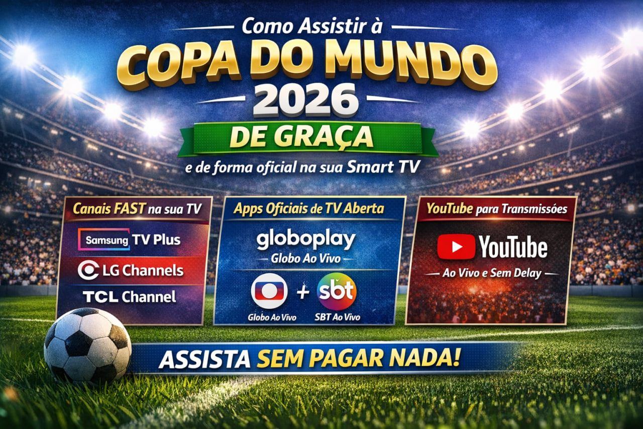 A Copa do Mundo 2026 vai ser a primeira com 48 seleções e um volume ainda maior de jogos, o que faz muita gente buscar alternativas para assistir sem depender de TV por assinatura — e, principalmente, sem correr risco com IPTV pirata. A boa notícia é que, em 2026, existem caminhos legais e gratuitos (ou com camadas grátis bem úteis) diretamente na sua Smart TV e também no celular/PC, usando plataformas oficiais e serviços FAST (canais gratuitos com anúncios).