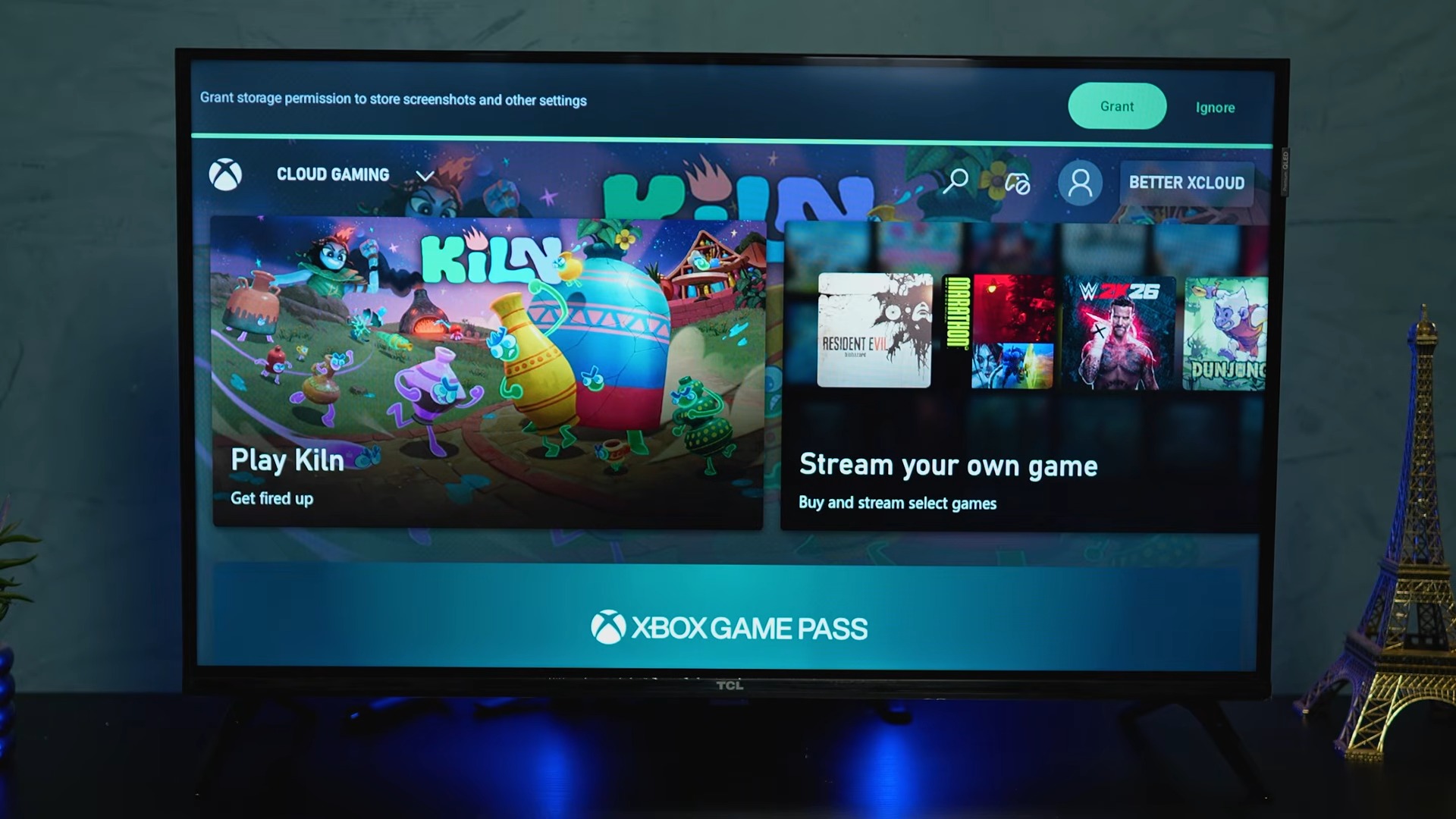 O Xbox Game Pass é um serviço de assinatura que permite jogar uma vasta biblioteca de jogos via streaming. Em vez de rodar o jogo localmente, a TV apenas recebe a imagem de servidores da Microsoft, enquanto os comandos são enviados pela internet.