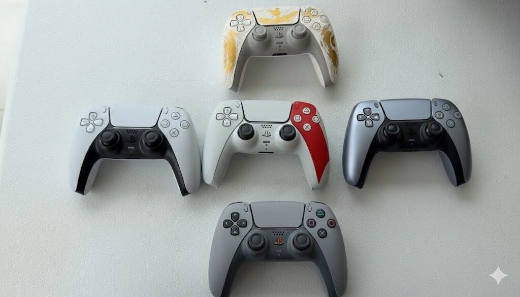 | DualSense 30 anos | Não | O 30 anos tende a um cinza diferente, mais “chapado”; o God of War tem outro tom e contraste com vermelho |