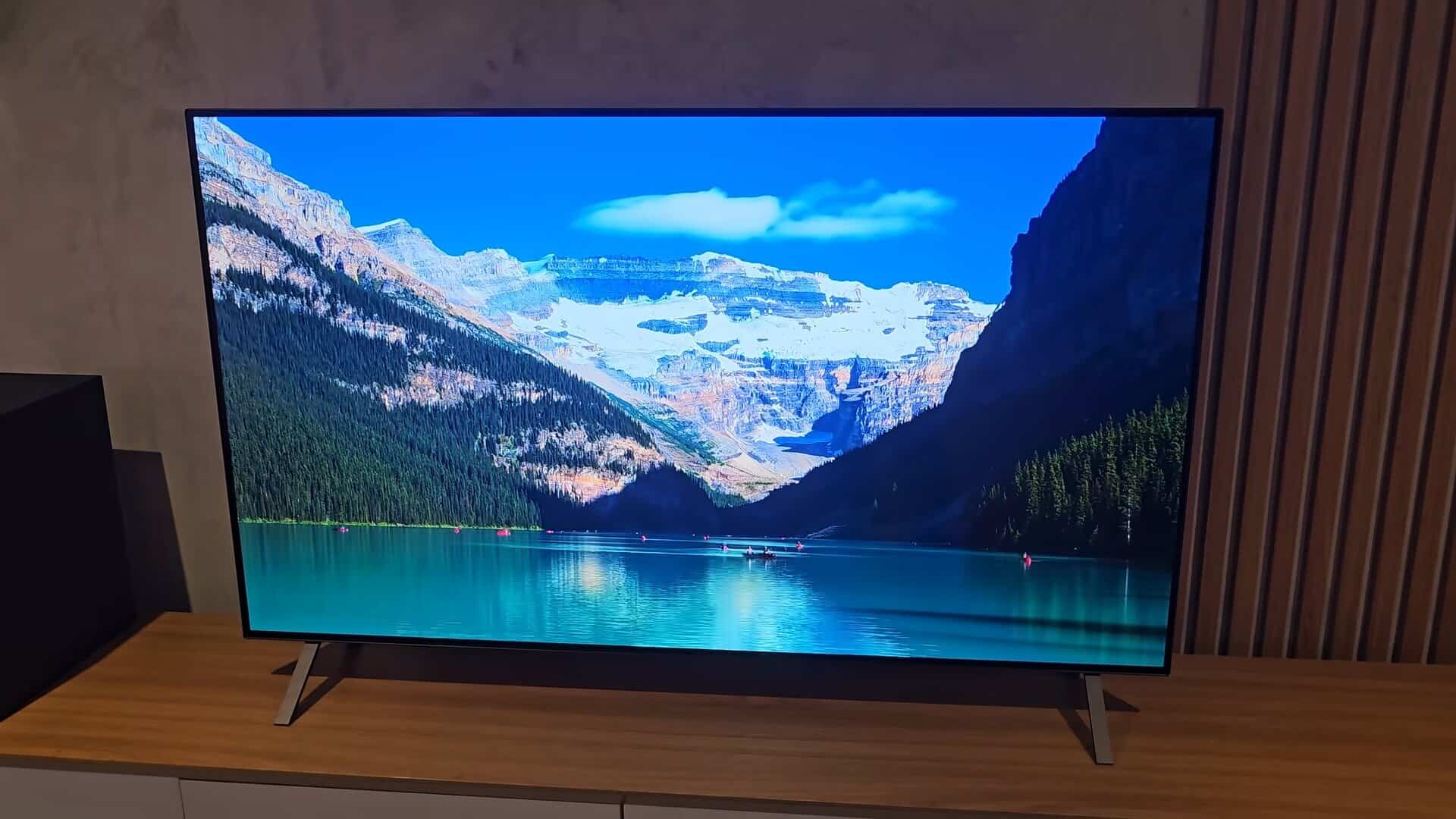 Também faz falta uma versão menor, como 48 polegadas, que seria uma opção muito interessante para quem quer usar a TV em quarto, setup gamer ou ambientes menores. Essa ausência reduz um pouco o alcance do modelo.
