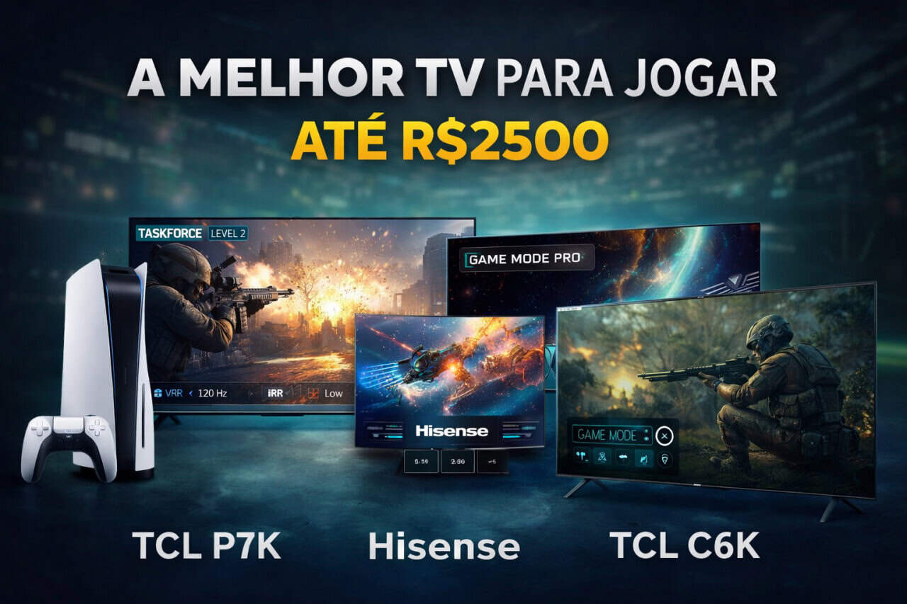 Se o orçamento é realmente limitado a R$ 2.500, a TCL P7K é hoje a melhor TV gamer custo-benefício nessa faixa.