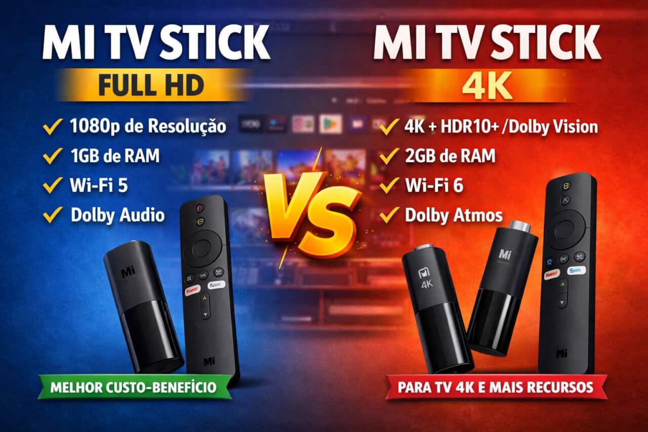 O Mi TV Stick se tornou uma das opções mais populares para quem quer transformar uma TV antiga em Smart TV sem gastar muito. Ele é compacto, fácil de instalar, roda um sistema “limpo” e dá acesso a aplicativos essenciais como Netflix, Prime Video e YouTube pela Play Store. Mas existe um ponto que muda tudo na decisão: ele é vendido em duas versões (Full HD e 4K), e cada uma faz sentido para um tipo de uso.