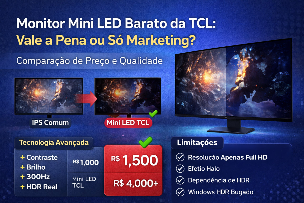 O mercado brasileiro de monitores passou por uma mudança importante com a chegada do monitor TCL Mini LED, trazendo tecnologias avançadas por um preço muito mais acessível do que o padrão tradicional.
