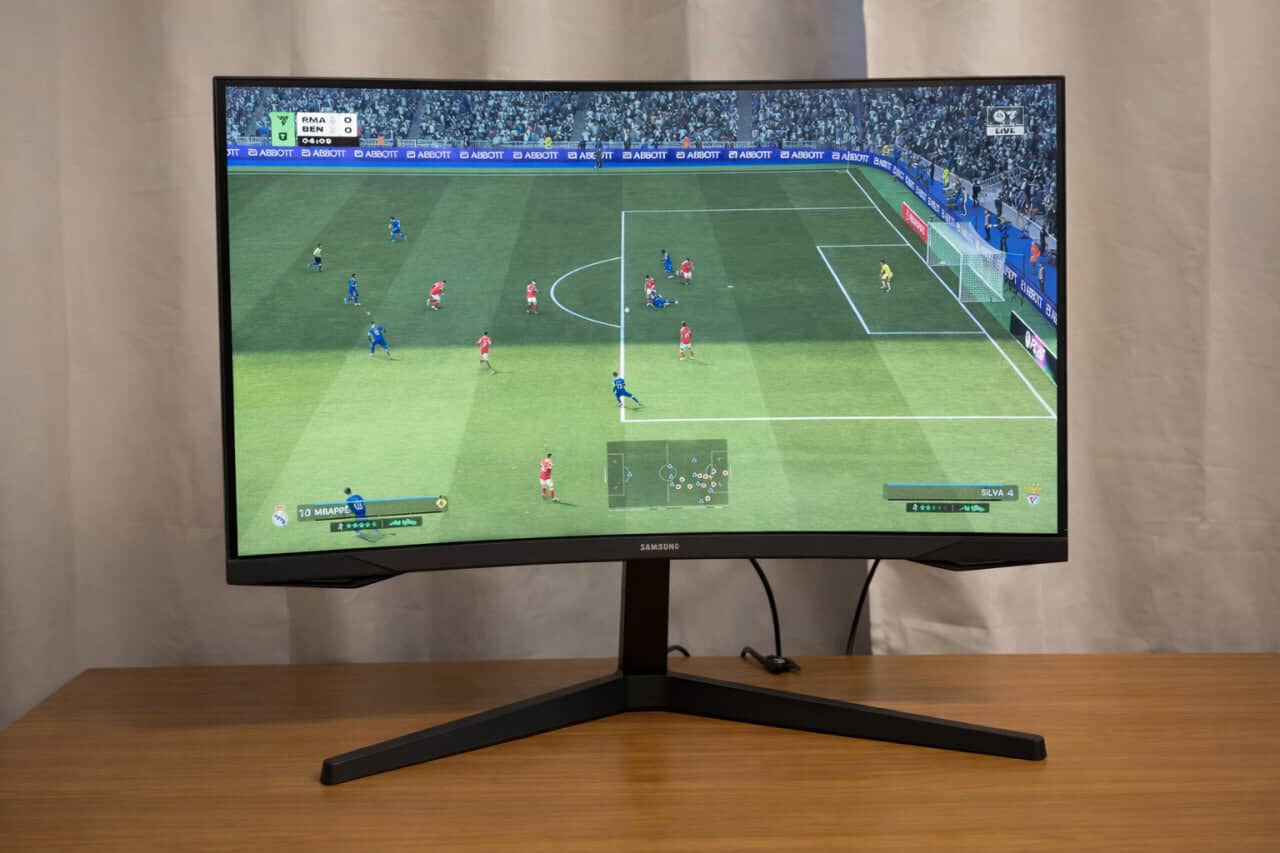 Em FPS, a diferença entre 60 e 120Hz fica nítida na sensação de movimento, mira e leitura de cenário. Já em jogos de futebol e corrida, a tela grande e curvada aumenta bastante a sensação de profundidade e “campo de visão”.