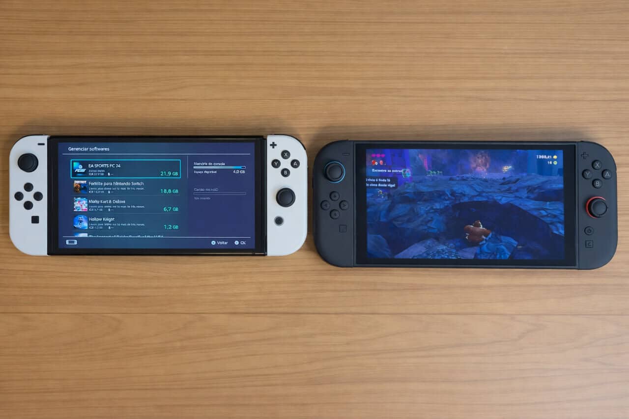 O OLED ganha em contraste e cores, enquanto o Switch 2 oferece mais fluidez e resolução superior.