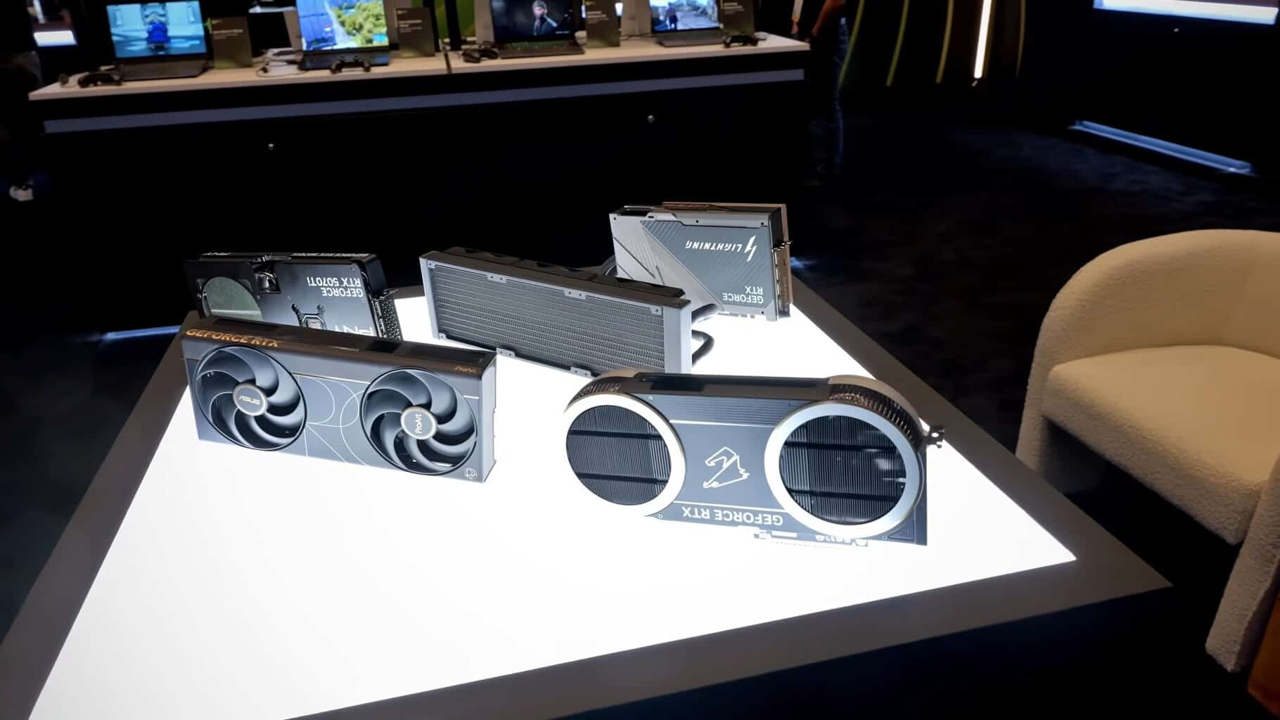 Alguns modelos apresentados chamaram atenção pelo visual e construção diferenciada, incluindo versões com telas LCD integradas, iluminação avançada e designs completamente fora do padrão tradicional. Todas baseadas no chip topo de linha da nova geração RTX.