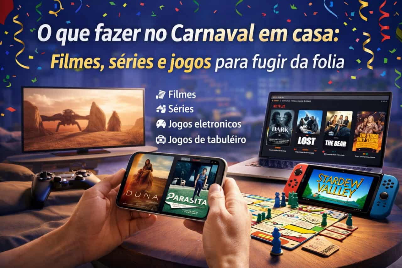 Filmes, séries, jogos eletrônicos e jogos de tabuleiro são alternativas ideais para quem quer fugir da folia e curtir o Carnaval de forma mais tranquila. A seguir, você encontra uma seleção completa de sugestões para relaxar, se envolver em boas histórias e aproveitar o feriado do começo ao fim sem sair de casa.