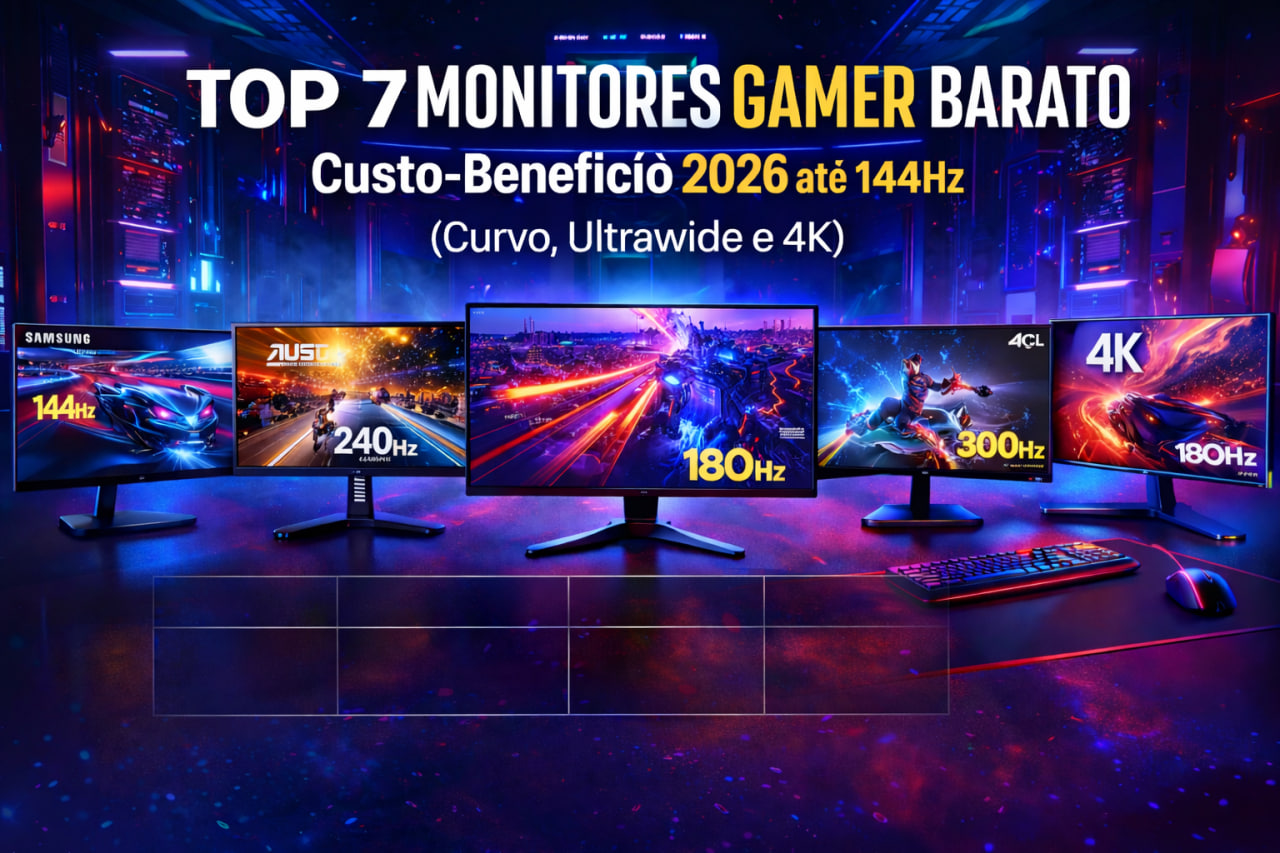 Neste guia completo você confere os 7 melhores monitores gamer custo-benefício para comprar em 2026, começando pelos mais baratos até opções avançadas com alta taxa de atualização, Quad HD e até Mini LED.