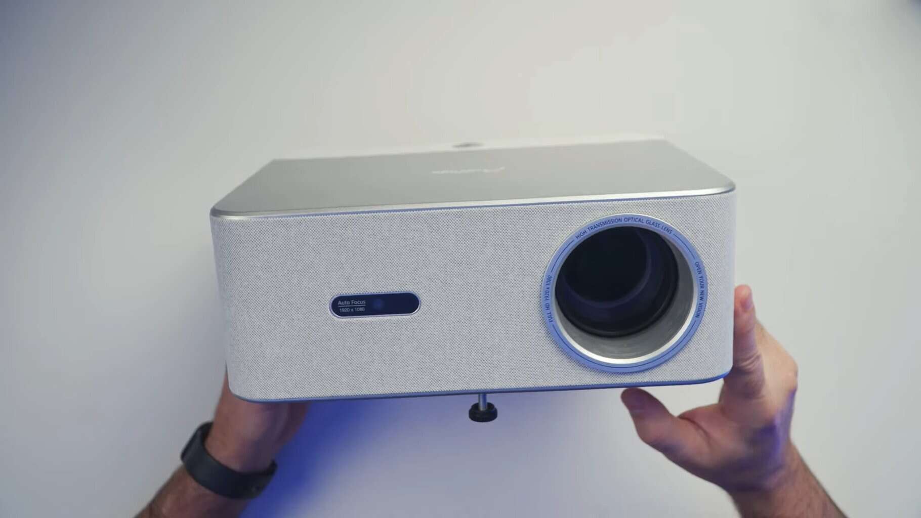 O conjunto passa boa impressão e é o tipo de projetor que fica bonito em sala ou quarto, sem cara de “caixa genérica”.