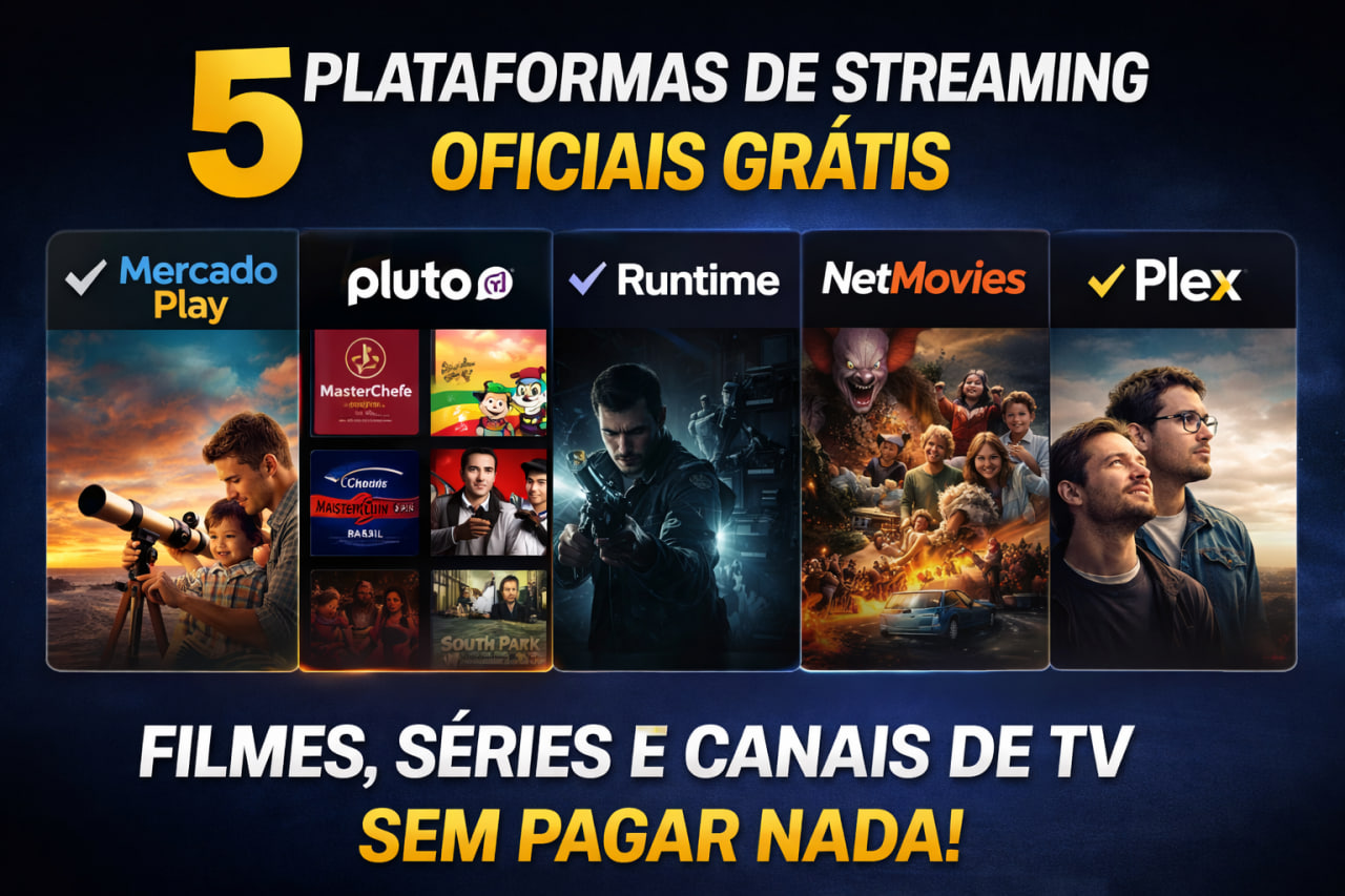 Hoje existem diversas opções de streaming gratuito que entregam conteúdo de qualidade sem custo. Plataformas como Mercado Play, Pluto TV, Runtime, NetMovies e Plex mostram que é possível assistir filmes e séries sem precisar pagar mensalidades altas.