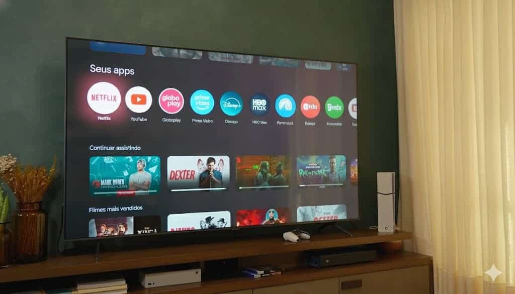 - Google TV com muitos apps