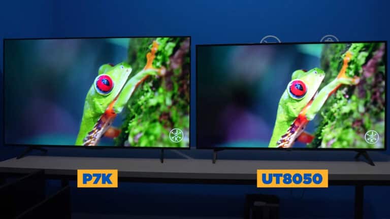- Painel (50”): UT8050 50″ costuma usar IPS (melhores ângulos, pretos mais rasos); P7K 50″ vem com HVA (variante de VA com pretos mais profundos e ângulo melhorado vs VA clássico).
