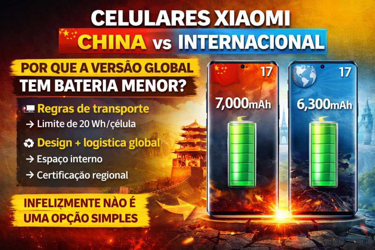 Nos últimos anos, ficou cada vez mais comum ver smartphones da Xiaomi lançados na China com baterias maiores do que as versões globais. Um exemplo claro é a linha Xiaomi 17, que na versão chinesa pode chegar a 7.000mAh, enquanto o modelo internacional costuma vir com algo em torno de 6.300mAh.