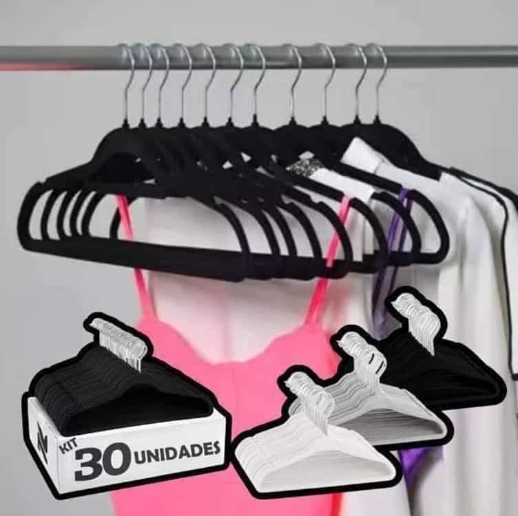 Cabides De Veludo Adulto Fino Antideslizante Roupas 30 Peças Cor Cinza