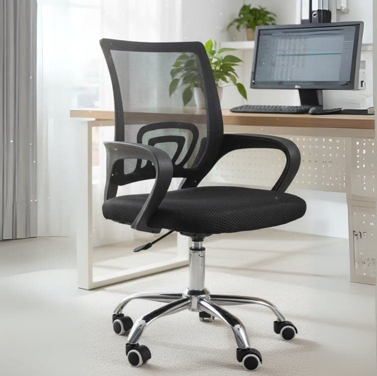 Cadeira de Escritório Secretária Base Preta com Rodinha Fortt Roma Preta – CSF06-P – Preto