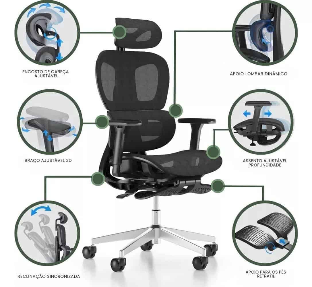 Cadeira Escritório Ergonômica Executiva Premium BT03 Luvinco com Apoio de Perna Material do Estofamento Mesh