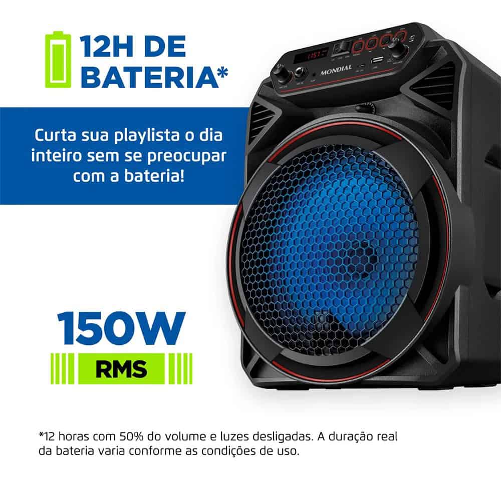 Caixa De Som Mondial Cm-150 Amplificada Connect Party Plus Cor Preto 110V/220V