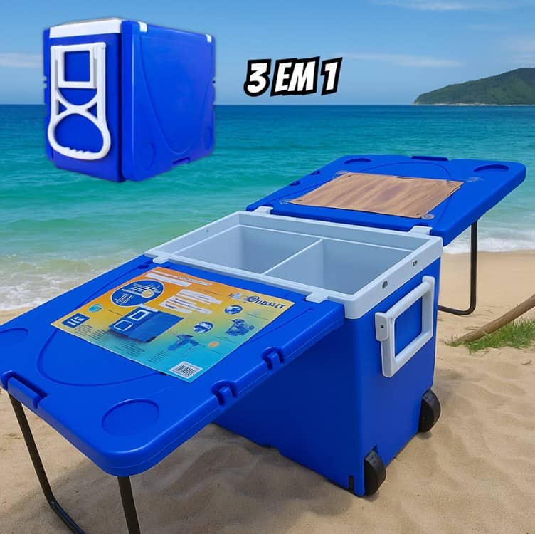 Caixa Térmica 32 Litros Mesa Multifuncional 3×1 Rodinhas e Alça Transporte – Arqplast