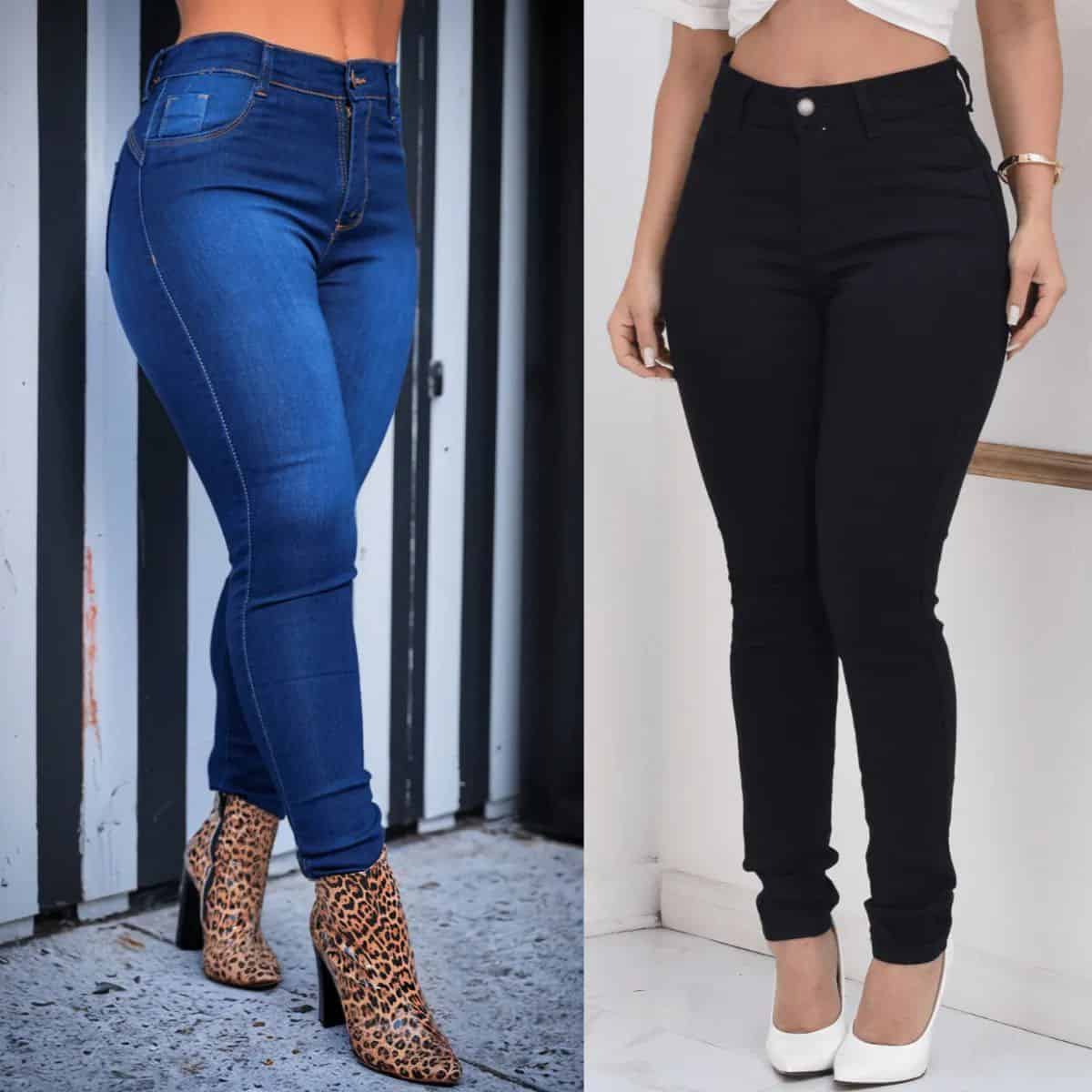 Calça Preta Jeans Feminina Skinny Cós Alto Levanta Bumbum