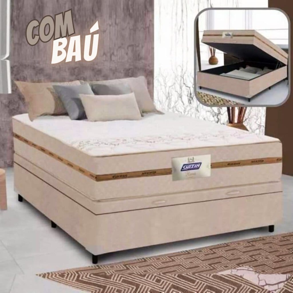 Cama Box Baú Casal Colchão Gazin Molas Flora Bege 138x188x61cm