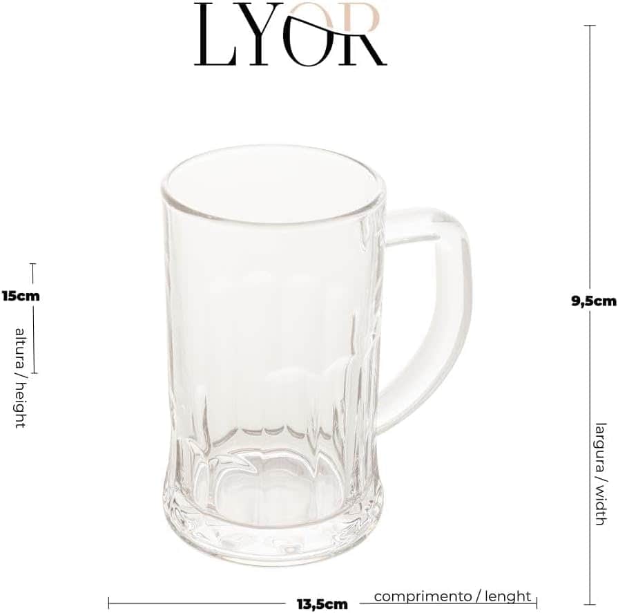 – Caneca para Chopp e Cerveja de Vidro Lyor 6622 Transparente 565Ml