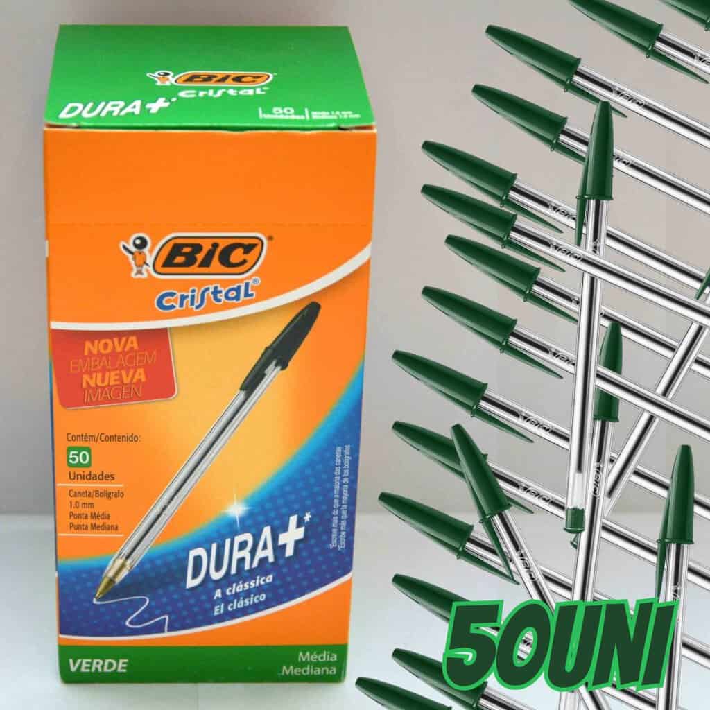Caneta BIC Verde Cristal Dura Mais – Ponta Esferográfica Média de 1.0mm. Escrita Macia e Cor Intensa – Pacote com 50 unidades