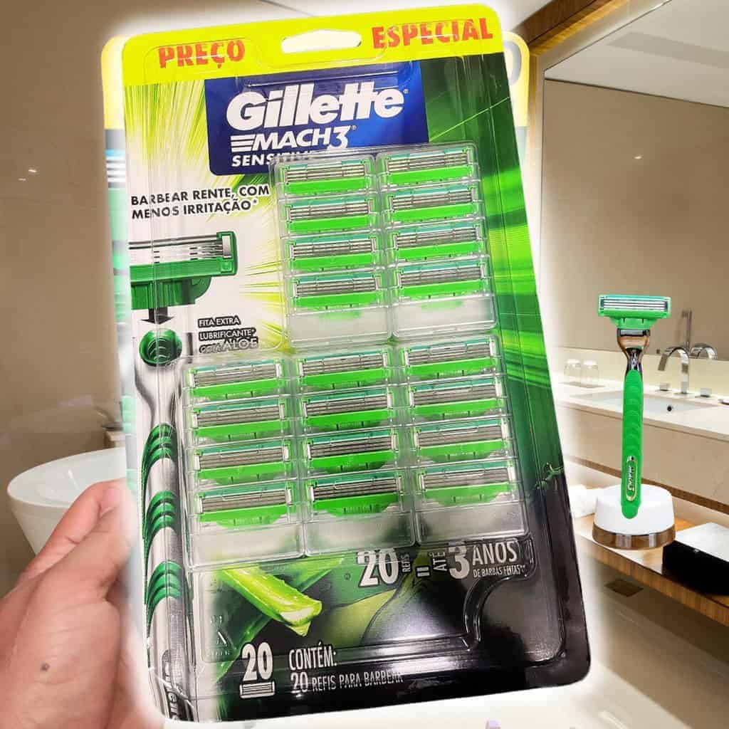 Gillette Mach3 Sensitive Carga para Aparelho de Barbear Recarregável com Aloe Vera, Ideal para Peles Sensíveis, 20 Uds