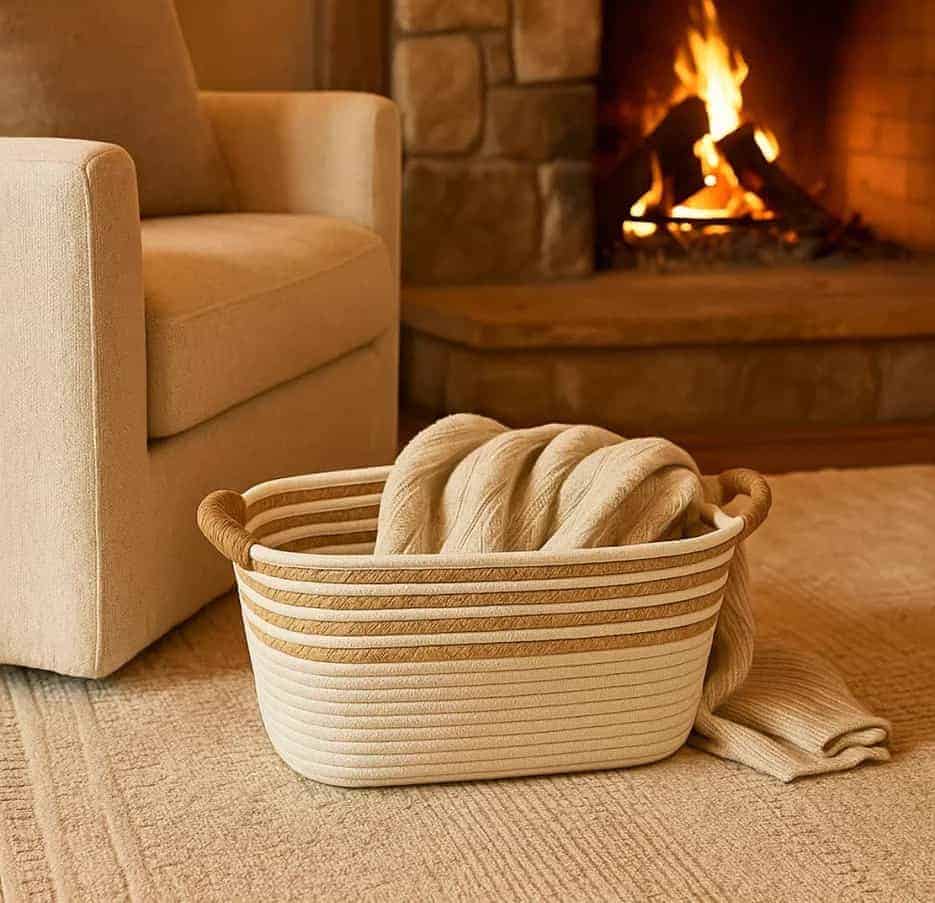 Cesto Grande Fibra Natural Alça Decorativo Casa Organizador Fibra E Algodão Branco