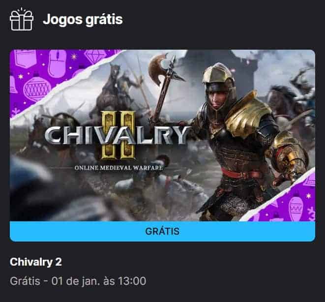Home > Games e Console > Chivalry 2 Chivalry 2 Epic Games Equipe Promotop • 31/12/25 De graça! Parcelado IR À LOJA Compartilhar: Detalhes da Oferta 🔥 Jogo Grátis Epic Games! – Chivalry 2 🛒 Link: store.epicgames.com/pt-BR/p/chivalry-2