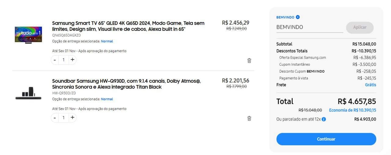 ⚠️ Depois que adicionar a TV no carrinho vai aparecer a opção de adicionar a Soundbar junto