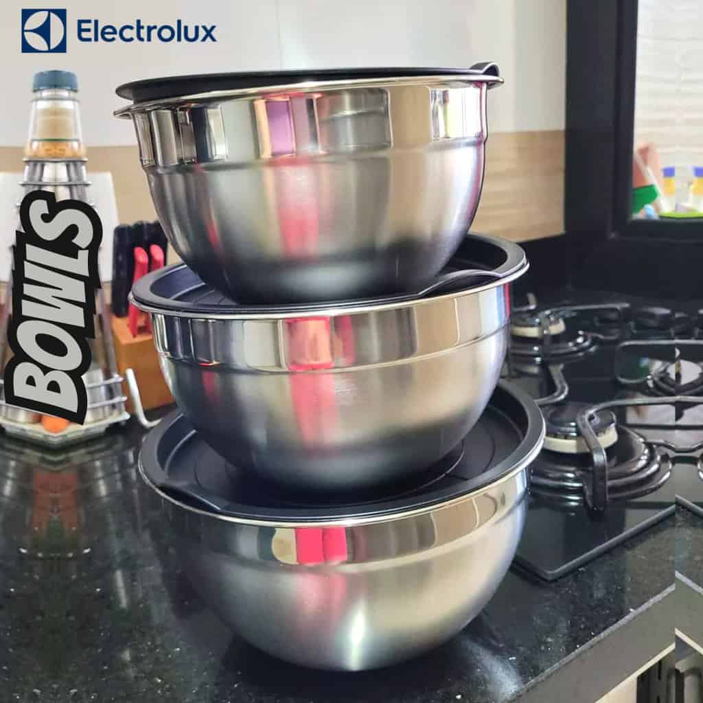 Conjunto com 3 Bowls Tigelas Inox e Tampa Plástica Electrolux