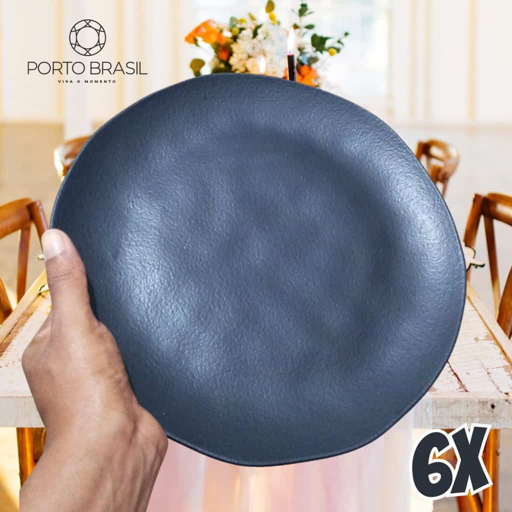 CONJUNTO C/ 6 PRATOS RASO ORGÂNICO PRETO MATTE Ø 26,5cm