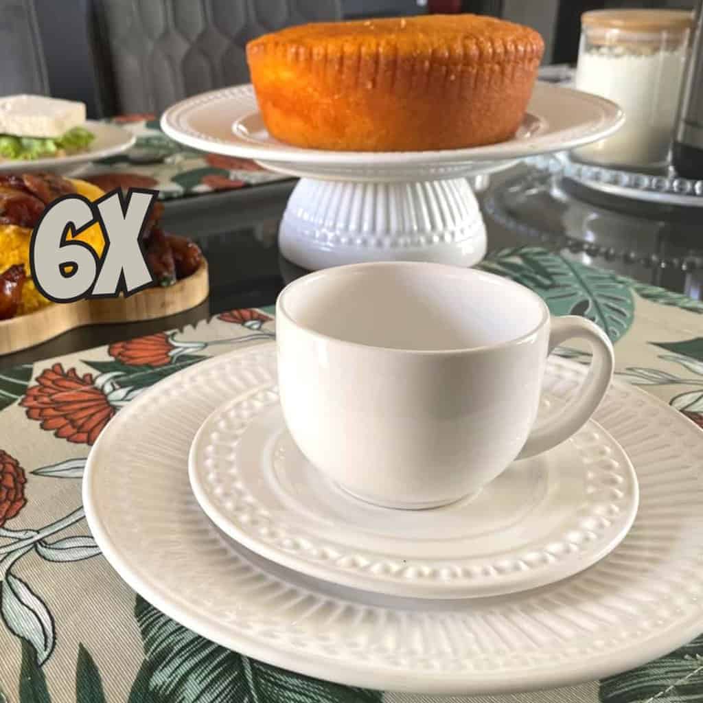 Conjunto C/ 6 Xícaras De Chá C/ 6 Pires Atenas Branco 161 ml