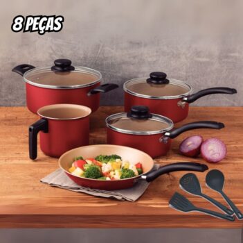 Conjunto De Panelas Antiaderente Cereja Arnix 8 Peças