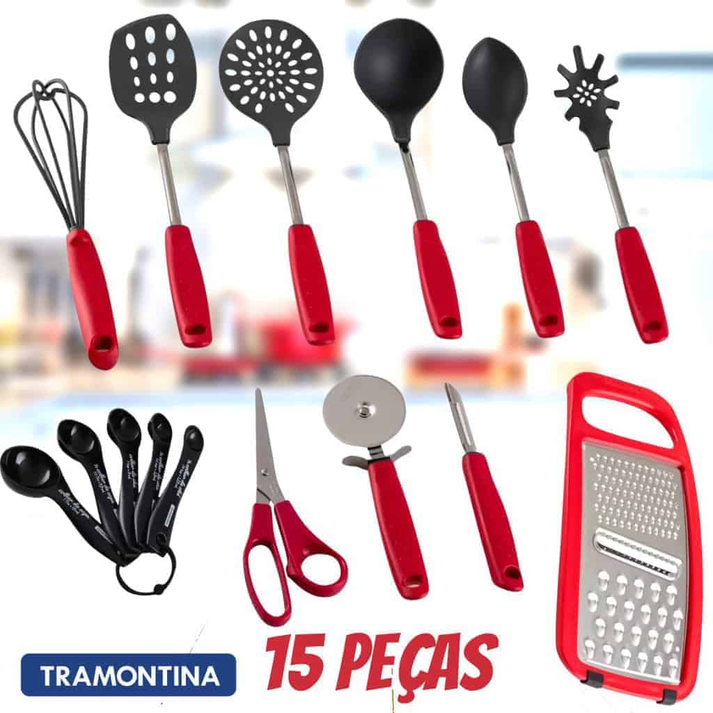 ✅ Conjunto de Utensílios Tramontina Utilitá – 15 Peças
