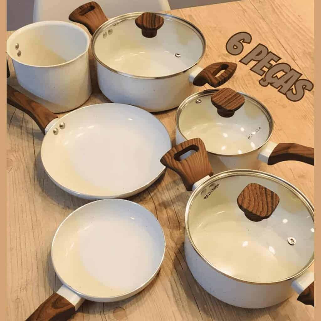 Conjunto Jogo 6 Panelas Pratic Cook Vanilla Marmol Indução Mimo