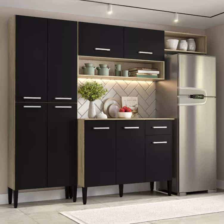 Cozinha Compacta Arizona Glam Com Armário E Balcão Carraro Cor Carvalho/Preto
