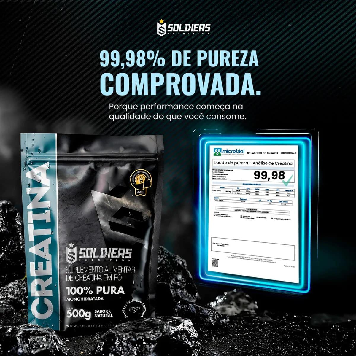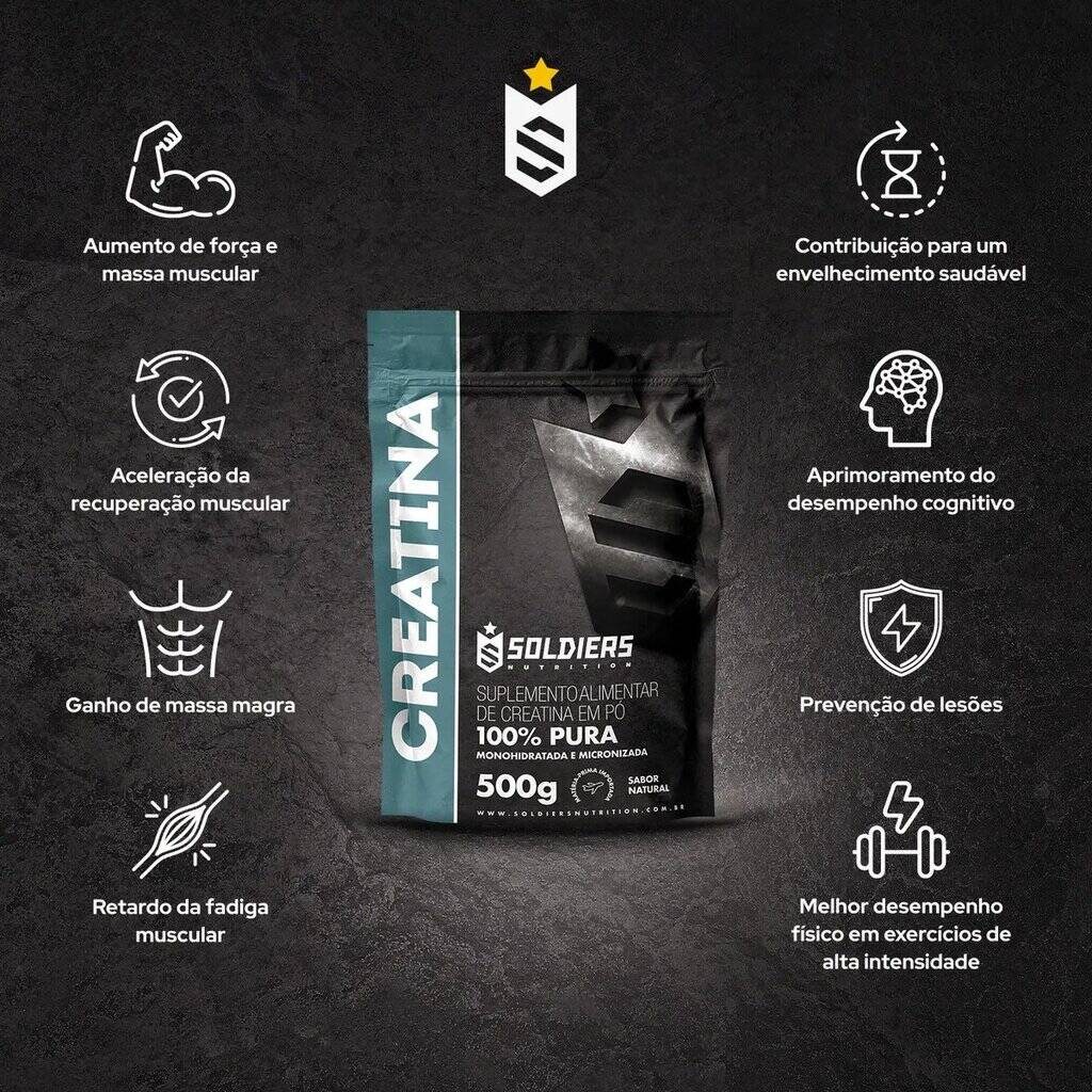 Creatina Monohidratada 500g Soldiers Nutrition 100% Pura Importada Alta Performance Músculo Treino