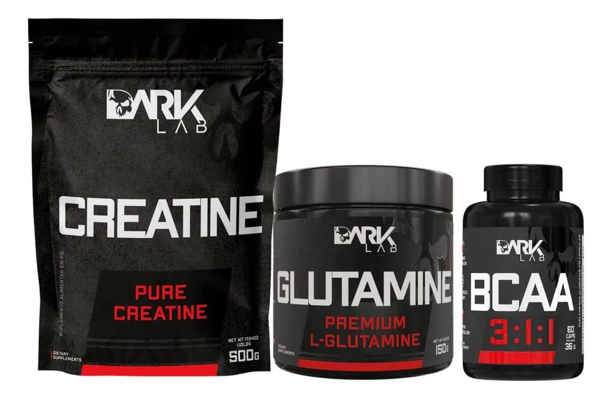Creatina Pura 500g Sem Sabor + Glutamina Premium 150g Sem Sabor + Bcaa 3:1:1 60 Caps Dark Lab