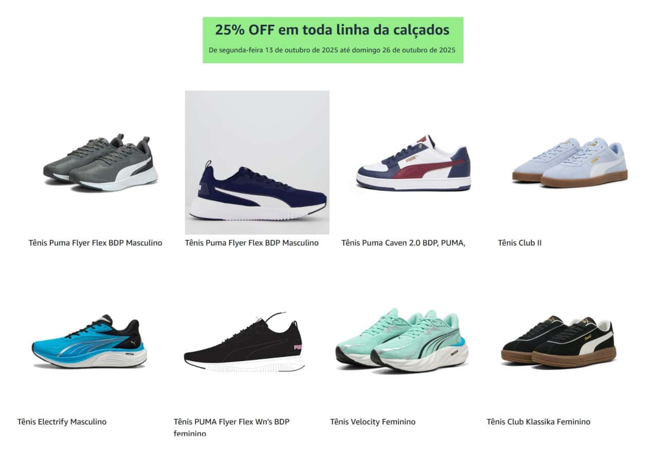 Cupom 25% OFF em toda linha da calçados – Amazon