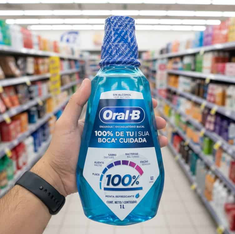 Oral-B Enxaguante Bucal, 100%, Sem Álcool, Sabor de Menta, 1 L
